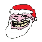 Satna Klause is a Christmas-themed meme which originated off 4chan's /b/ board on December 10th, 2010. It could be considered a variant of trollface, however, with the amount of original content made in a short amount of time, it rightfully deserves to be treated as a separate individual.